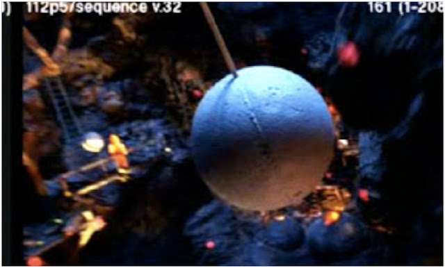 In the still from WETA Workshop (above) “the ball is lit by a blue light from above, and a weaker